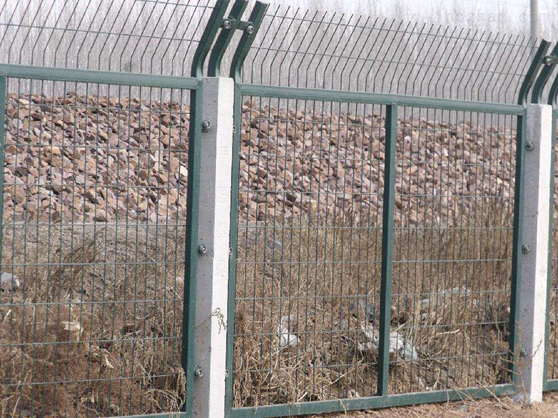 產品材質及工藝:內部采用HPB300冷拔低碳鋼絲與Q235矩管邊框;焊接完畢后,表面采用整體熱鍍鋅后浸塑處理,浸塑粉末一般采用墨綠、表面光滑、平整、日久抗腐蝕、抗紫外線的特性。鐵路防護柵欄是鐵路的安全設施安裝工程,主要應用在鐵路軌道兩側,用來防止來往的行人接近軌道及來往的火車,以保證行人的人身安全。因此,鐵路防護柵欄無論在技術上還是在質量上都比其他隔離柵要求更加嚴格。鐵路防護柵欄采用立柱混凝土澆筑件,工程造價低,強度高,整體穩定性好,適合大面積采用。