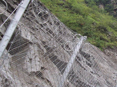 柔性防護網系統也有好幾種,不一樣的種類有不一樣的用途,根據工程的實踐情況選擇合適的商品,主動防護網將全部山體護住,平安系數非常高,落石即時松動也不會滾落,由于有柔性防護網的維護柔性防護網被裝置在山體的下面,有落石滾落的時分會被被逼防護網擋住,柔性防護網選用柔性鋼絲繩,這種鋼絲繩的拉強度非常大,落石滾落的時分,根據本人的柔性極好的把動能化解。